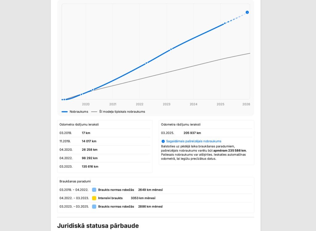 Ir carvertical izraksts. Nobraukums 236 000 km.